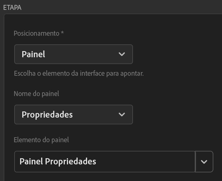 - Escolha o posicionamento do coach mark: