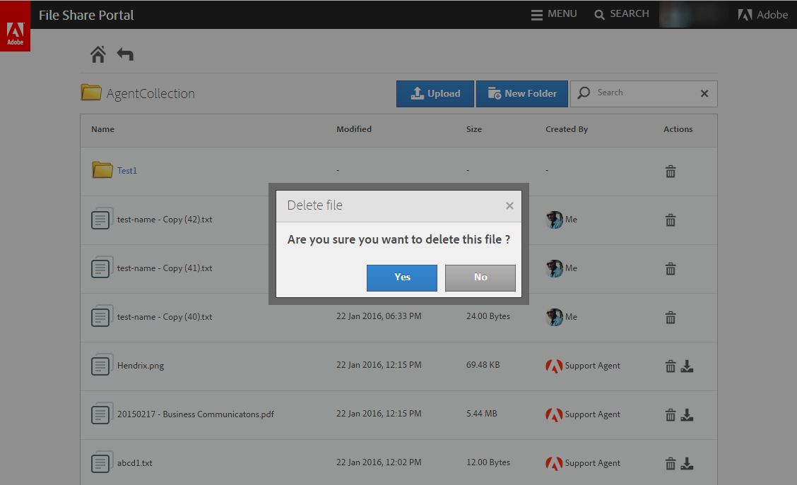 Baixar arquivos carregados por agentes de suporte da Adobe