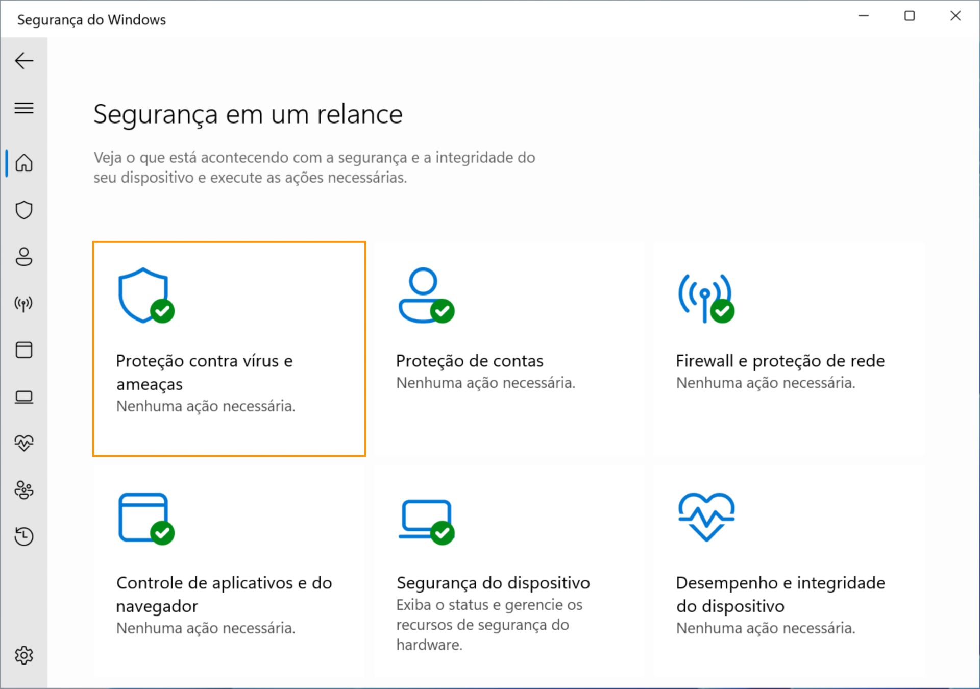 Você também pode selecionar Iniciar > Configurações > Atualizar & Segurança > Proteção contra vírus e ameaças.