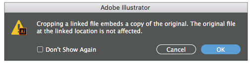 If you're working with a linked image, Illustrator prompts you that linked files are embedded after cropping. Click OK to continue.