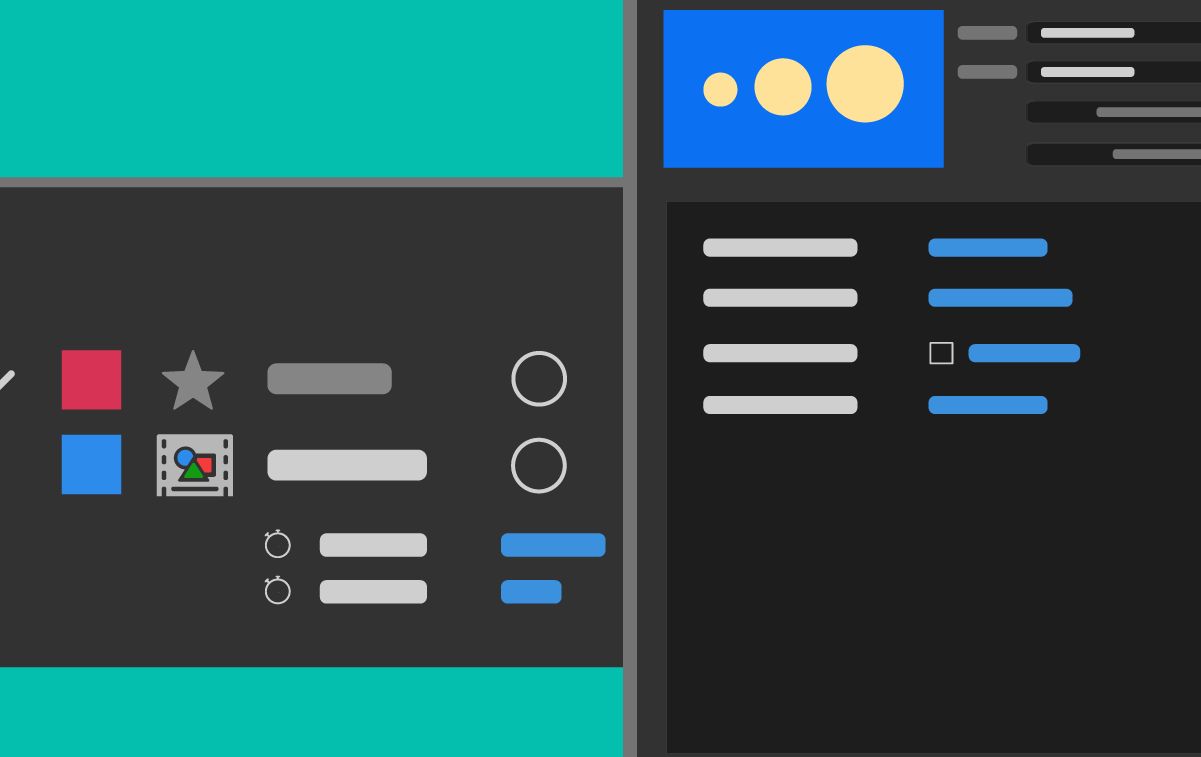 - Vous pouvez utiliser des expressions pour créer un menu déroulant dans le panneau Objets graphiques essentiels pour les workflows complexes avec plusieurs options pour les créateurs et créatrices, et éditeurs et éditeuses de modèles d’animations graphiques.