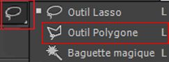| Outil Lasso (L) |  | Utilisez cet outil pour créer un contour irrégulier de sélection sur un objet. |