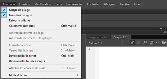 Dans le panneau Actions ou la fenêtre de script, sélectionnez Modifier > Préférences (Windows) ou Animate > Préférences (Macintosh).