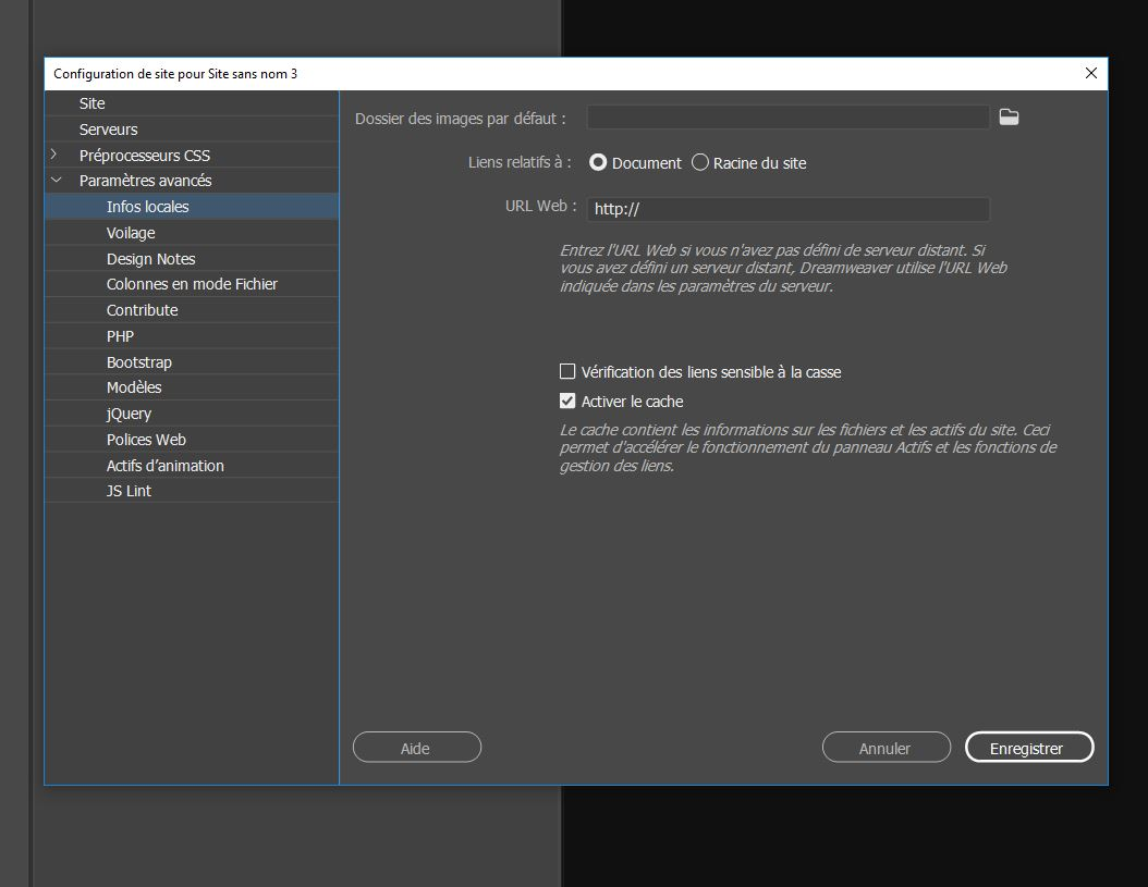 Découvrez quelles sont les options avancées de configuration de site dans Dreamweaver.