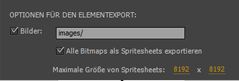 - Exportieren von Bitmaps als Spritesheet mit den Optionen auf der Registerkarte „Spritesheet“ unter „Einstellungen für Veröffentlichungen“.