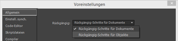 Um die Optionen für das Rückgängigmachen auf Objekt- bzw. auf Dokumentebene zu wählen, gehen Sie wie folgt vor:
