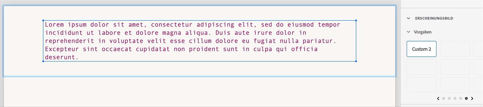 Wählen Sie im Bedienfeld Vorgaben eine Textvorgabe aus, z. B. „Haupttext 2“.