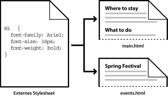Sammlungen von CSS-Regeln, die in einer separaten, externen CSS-Datei (.css) gespeichert sind (dies ist keine HTML-Datei). Diese Datei wird über einen Hyperlink im head-Bereich eines Dokuments oder eine @import-Regel mit einer oder mehreren Seiten einer Website verknüpft.