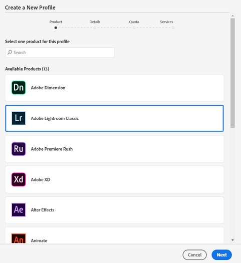 Mit dem Einzelprodukt-Abo für Creative Cloud für Unternehmen können Sie eines der verfügbaren Applikationen mit einer Einzelproduktlizenz wählen und Ihren Endbenutzern zuweisen. Sobald neue Applikationen als Einzelprodukt-Abo verfügbar sind, können Sie sie den Benutzern ohne Vertragsänderungen zuweisen.