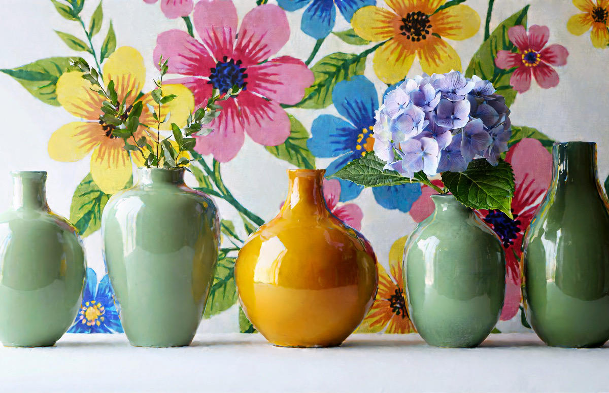 Verwendeter Prompt: Ändere die Farbe der dritten Vase in Senfgelb.