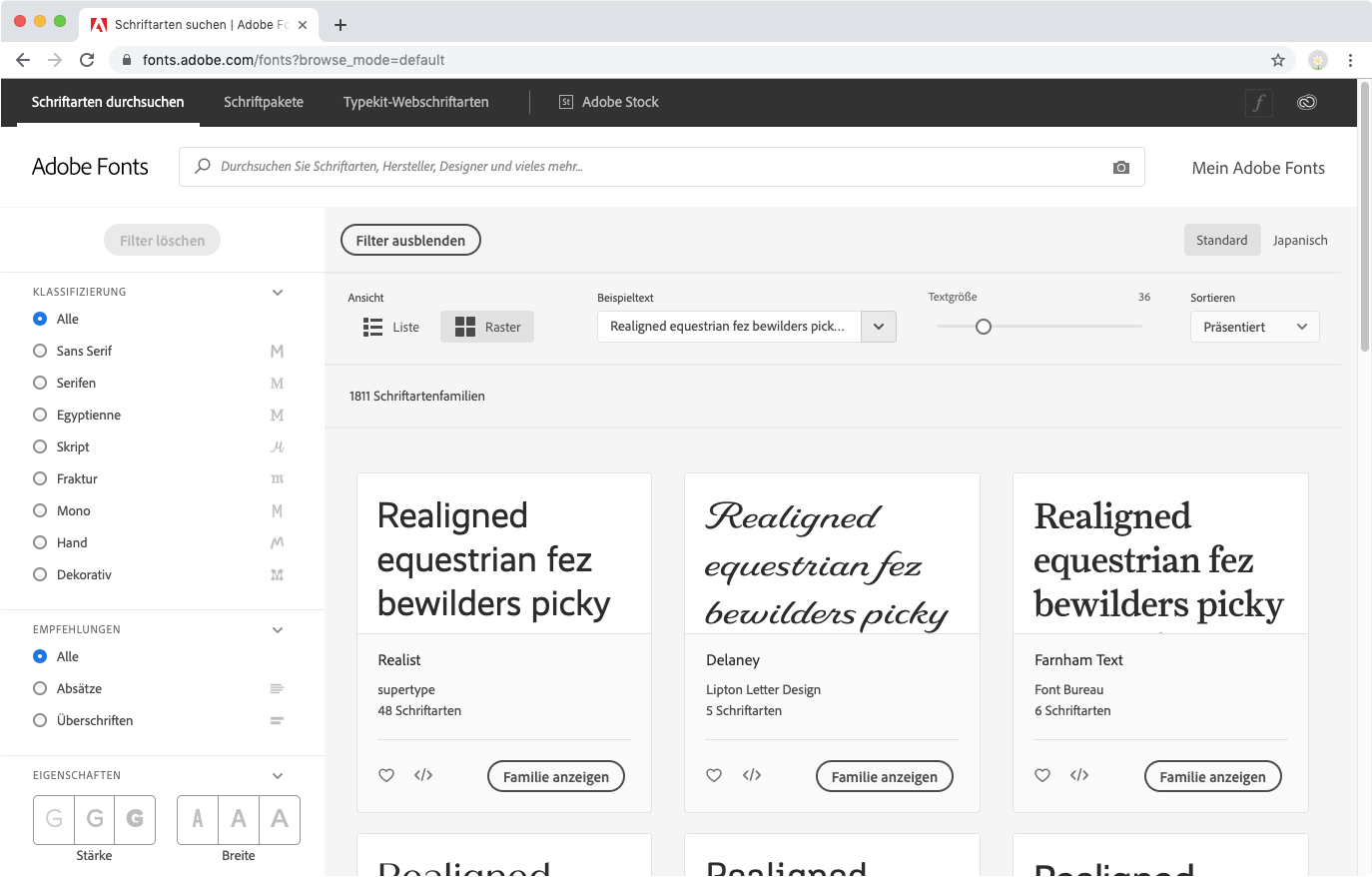Beginnen Sie damit, die Schriftenbibliothek zu durchsuchen. Die benötigte Sprachunterstützung kannst du im Dropdown-Menü SPRACHEN UND SCHRIFTSYSTEME auswählen.