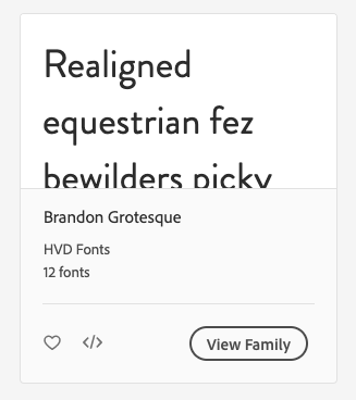 Wenn Sie eine Schrift finden, die Ihnen gefällt, klicken Sie auf die Schaltfläche </>, um die Schriftfamilie einem Web-Projekt hinzuzufügen.