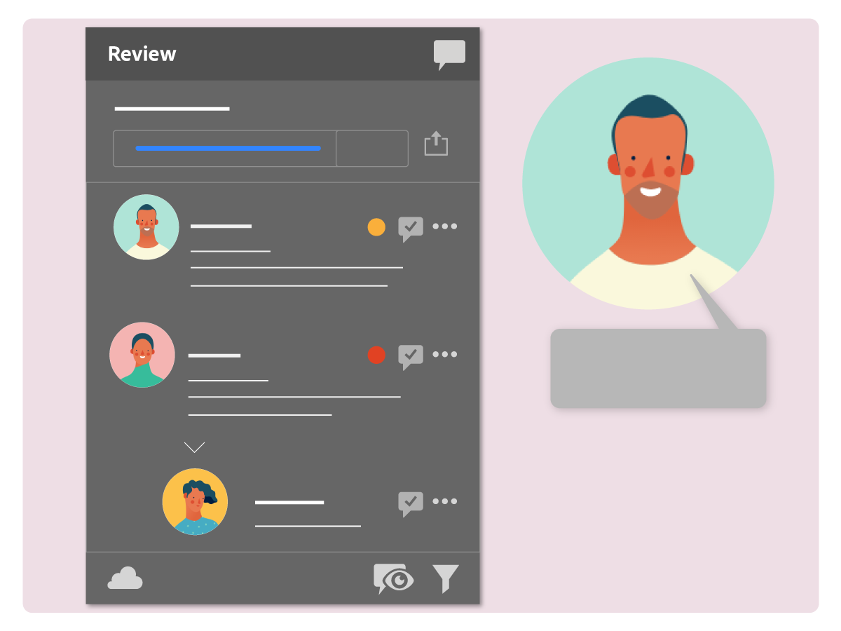 Stakeholder erhalten Review-Benachrichtigungen per E-Mail oder über den Creative Cloud-Client. Rufe die freigegebenen Dokumente in einem Browser auf, um sie mit Kommentaren oder Anmerkungen zu versehen.