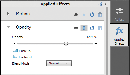 Klicken Sie im Bedienfeld „Effekteinstellungen“ auf das Dreieck neben „Deckkraft“, um die verfügbaren Optionen für die Konfiguration der Deckkraft anzuzeigen.