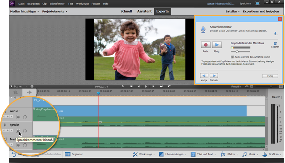 8. Hinzufügen eines Sprachkommentars zu Ihrem Film – Editor mit Assistent