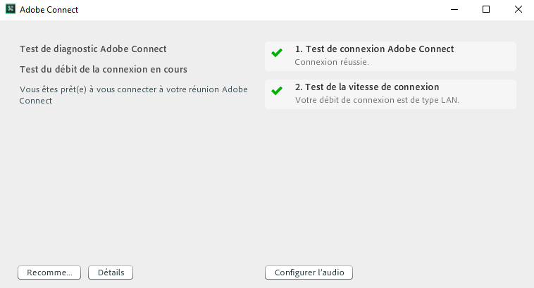 Test de diagnostic pré-réunion d’Adobe Connect