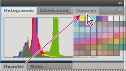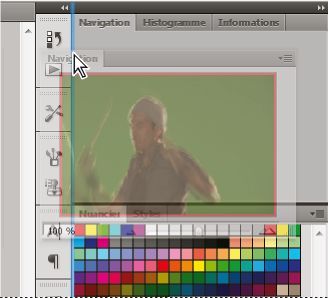 Pour redimensionner un panneau, faites glisser l’un de ses côtés. Cette méthode de redimensionnement ne fonctionne pas toujours, notamment avec le panneau Couleur de Photoshop.