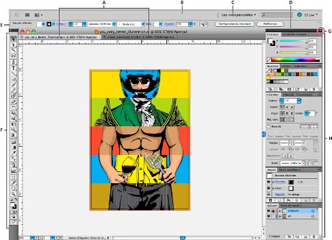 les exemples suivants sont basés sur Photoshop. L’espace de travail est le même dans tous les produits.