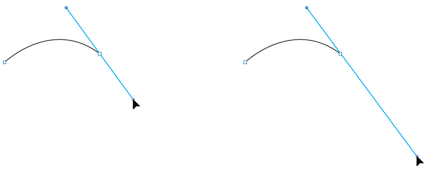<b>(Gauche)</b> Les poignées en vis-à-vis sont égales et associées.<br/><b>(Droite)</b> Cmde/Ctrl enfoncée, vous pouvez maintenant rendre les poignées inégales tout en faisant glisser.