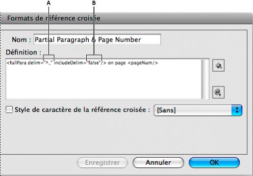 Dans la boîte de dialogue Formats de référence croisée, créez ou modifiez le format à appliquer.