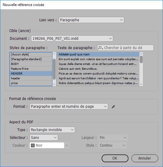 Choisissez la commande Texte > Hyperliens et références croisées > Options de référence croisée.