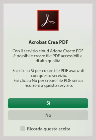 Consente di aprire il documento convertito direttamente in Acrobat. (Eccezione: se si sceglie l’opzione Converti a Adobe PDF e invia per e-mail.)