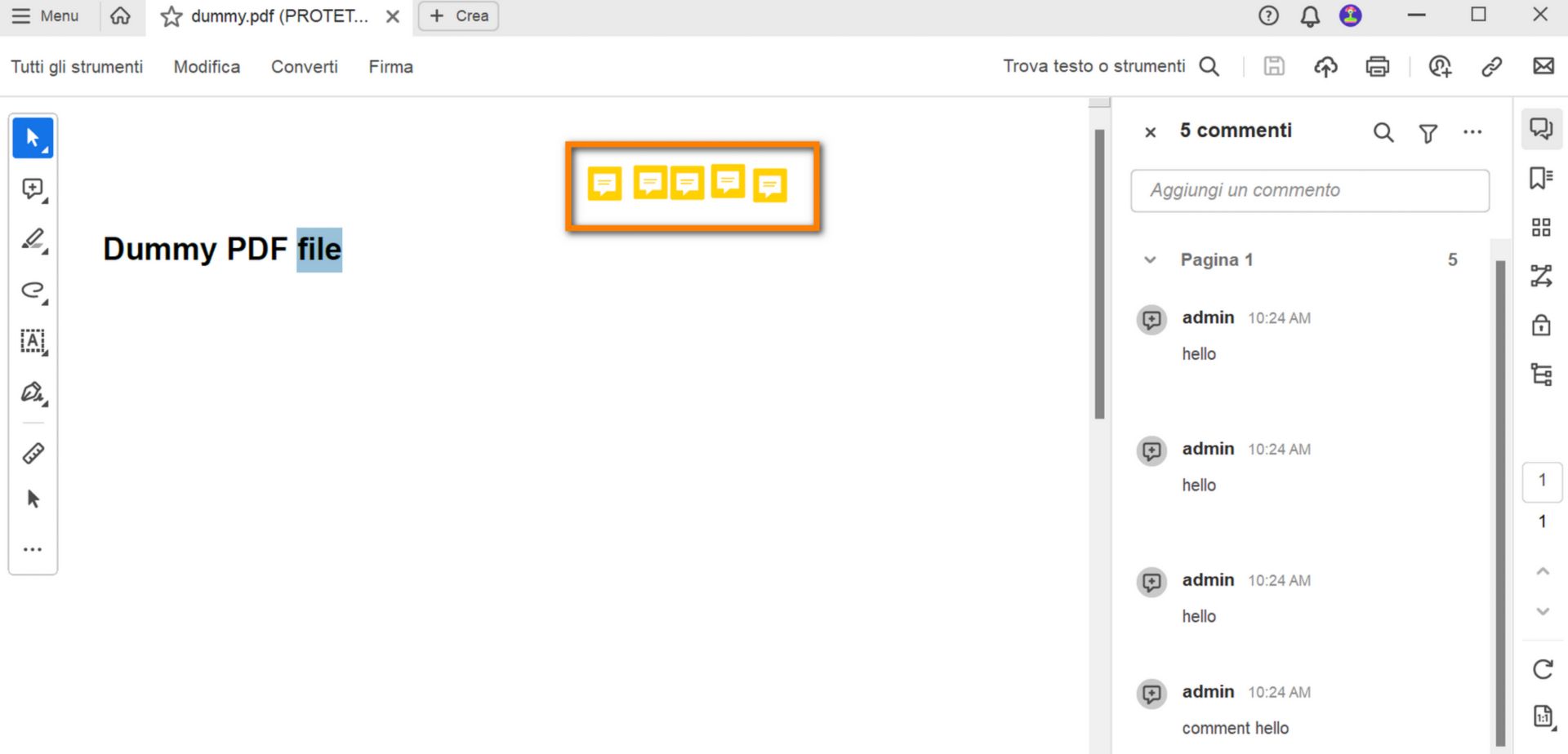 Creazione di commenti a livello di pagina
