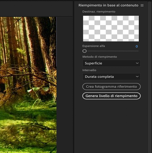 5. Fai clic sul pulsante Genera livello di riempimento per effettuare il rendering del Riempimento in base al contenuto che fa riferimento al fotogramma fisso.