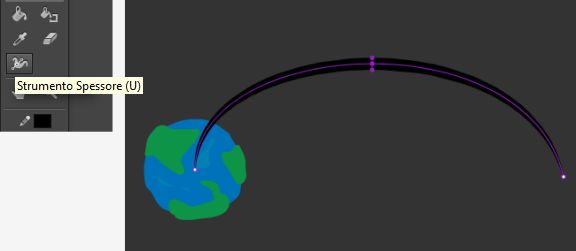 - Scegliete lo strumento Spessore (U) dalla casella degli strumenti, fate clic sul tracciato e trascinate per variare lo spessore del tracciato.