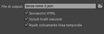 Consente di specificare se sovrascrivere o meno il Wrapper HTML ogni volta che pubblicate il progetto WebGL. Potete deselezionare questa opzione se avete apportato modifiche esterne al file HTML pubblicato e desiderate conservarle quando aggiornate tutte le modifiche apportate all’animazione o alle risorse in Animate.
