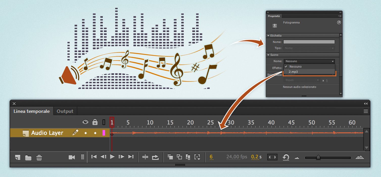 In Animate esistono due tipi di suoni: suoni associati agli eventi e audio in streaming: