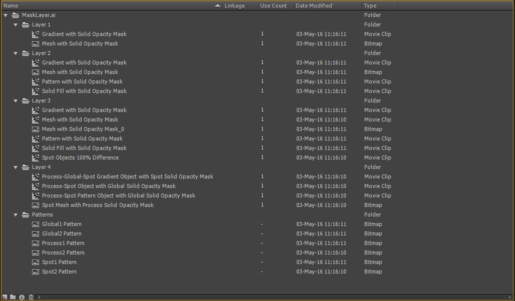 Nota: se un file raster di Illustrator è collegato, soltanto i formati JPEG, GIF o PNG vengono importati con la conservazione del formato nativo. Tutti gli altri tipi di file vengono convertiti nel formato PNG in Animate. Inoltre, la conversione nel formato PNG dipende dalla versione di QuickTime® installata nel computer.