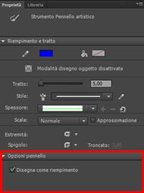 I pennelli artistici disegnati in Animate si comportano come tratti e possono essere convertiti in riempimenti con l’opzione Converti linee in riempimenti.