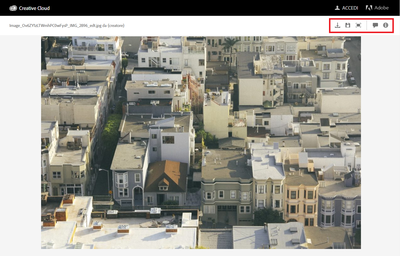 - I destinatari riceveranno l’invito a esaminare il documento tramite e-mail e una notifica nell’app.Possono accedere ai documenti condivisi nell'app Creative Cloud selezionando File > Condiviso con te.