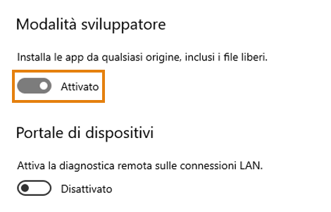 Se Modalità sviluppatore è disattivata, potresti aver bisogno dell'autorizzazione dell'amministratore per cambiare questa impostazione.