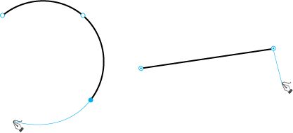 (A sinistra) Per impostazione predefinita, per le curve vengono creati punti arrotondati (A destra) Per creare un punto angolo, fate doppio clic o premete il tasto Alt mentre rilasciate un punto (A sinistra) Per impostazione predefinita, per le curve vengono creati punti arrotondati (A destra) Per creare un punto angolo, fate doppio clic o premete il tasto Alt mentre rilasciate un punto -