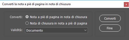 Effettuate una delle seguenti operazioni: - Scegliete Nota a piè di pagina in nota di chiusura per convertire le nota a piè di pagina in note di chiusura.