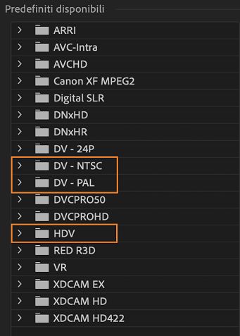 Per le riprese HDV, create e salvate un predefinito personalizzato con impostazioni corrispondenti a quelle della ripresa. Per ulteriori informazioni sulla creazione di predefiniti di sequenza personalizzati, consultate Creare un predefinito di sequenza personalizzato.