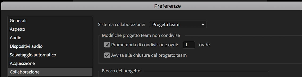 Se non hai condiviso le modifiche, riceverai un promemoria ogni due ore. Per modificare la frequenza del promemoria o annullarlo, modifica le impostazioni in Preferenze > Collaborazione nella sezione Modifiche Progetti team non condivise.