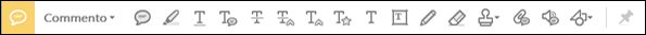 È possibile inserire commenti nei file PDF utilizzando gli strumenti di annotazione e marcatura grafica. Tutti gli strumenti di annotazione marcatura grafica si trovano nella barra degli strumenti secondari della funzione Commento. Quando si riceve un PDF per una revisione, è possibile inserire delle note utilizzando gli strumenti per commenti e marcatura.