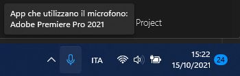 Windows 11 indica che le applicazioni stanno accedendo attivamente a un dispositivo di input audio con un'icona e un messaggio nella barra delle applicazioni.