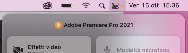Quando un'applicazione Adobe utilizza un dispositivo di input audio, viene visualizzato un piccolo indicatore arancione nella barra dei menu.