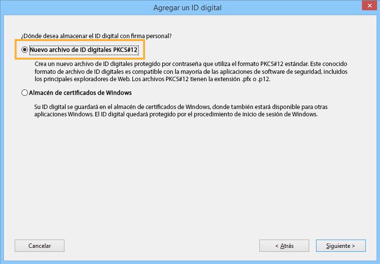 Seleccione esta opción si obtuvo un ID digital como un archivo electrónico. Siga las instrucciones para seleccionar el archivo de ID digital, escribir la contraseña y agregar el ID digital a la lista.