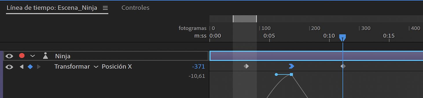 ), se crea un fotograma clave en la posición actual del indicador de tiempo.