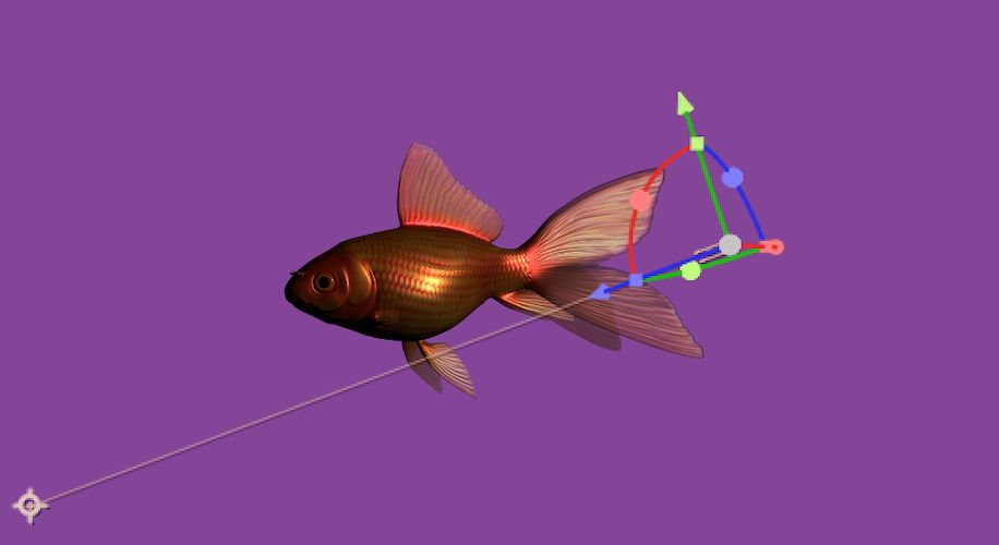 Movimiento de una cámara, luz o punto de interés con las herramientas Selección y Rotación