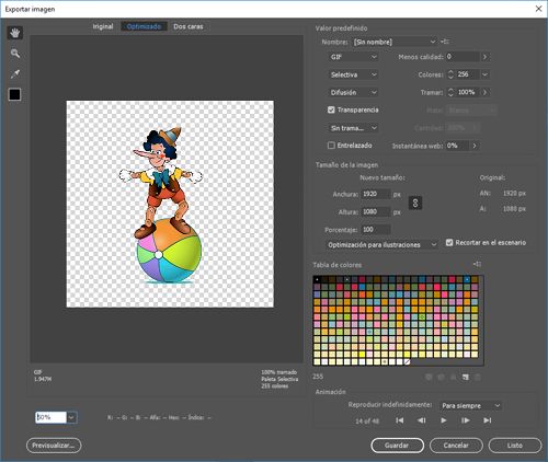 20. Opciones de optimización para Imágenes y archivos GIF animados