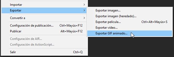 En Animate, el contenido se puede exportar en formato FXG de dos maneras: