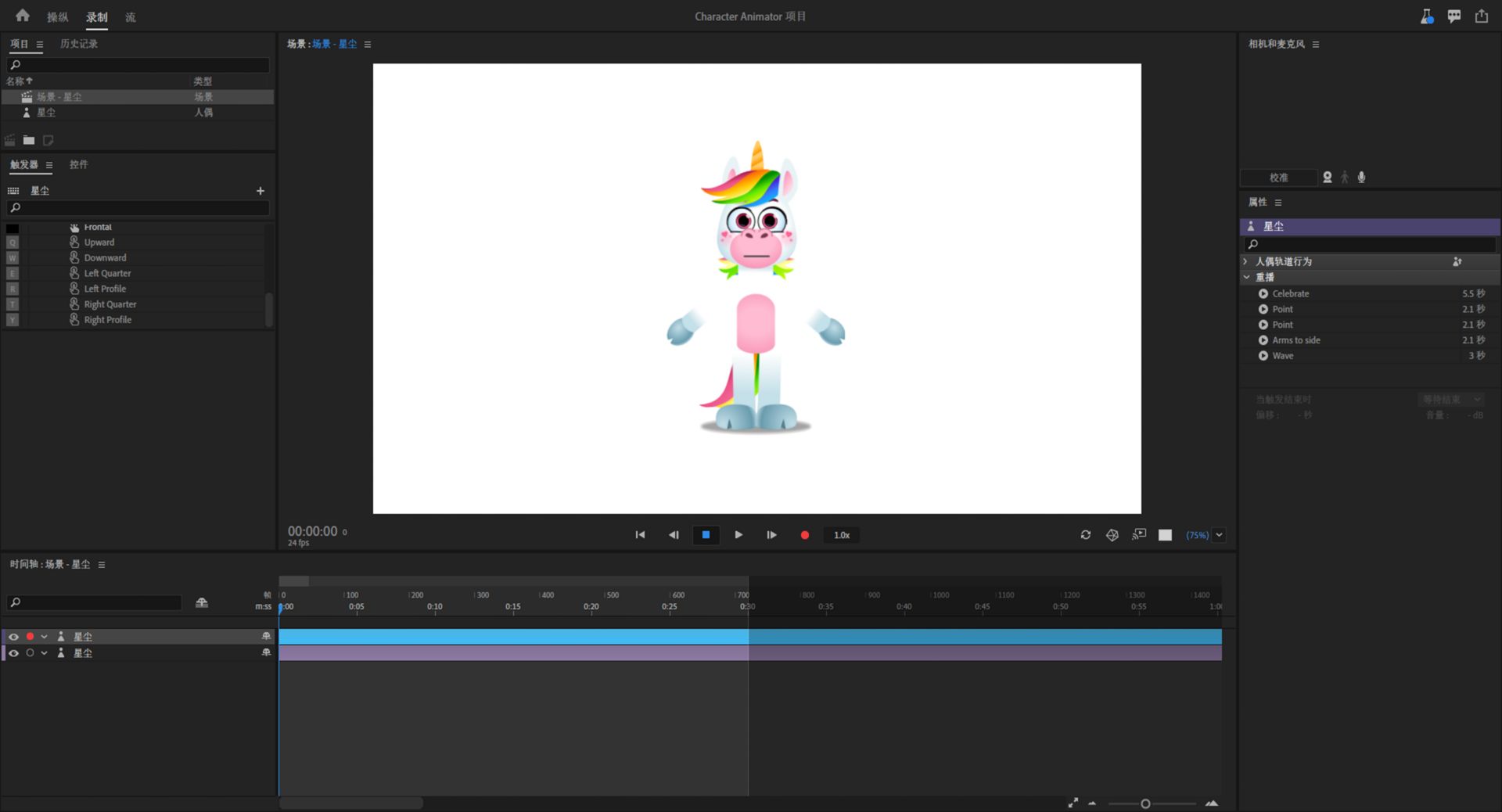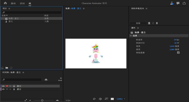 首先借助模板人偶和教程之类的工具启动 Character Animator。