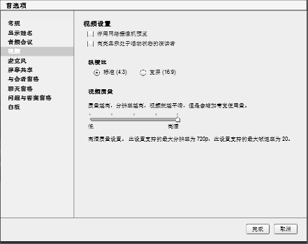 帐户管理员可以选择强制所有会议室使用“增强音频/视频体验”或“标准视图”,亦可选择由主持人决定每个会议室的设置(默认选项)。