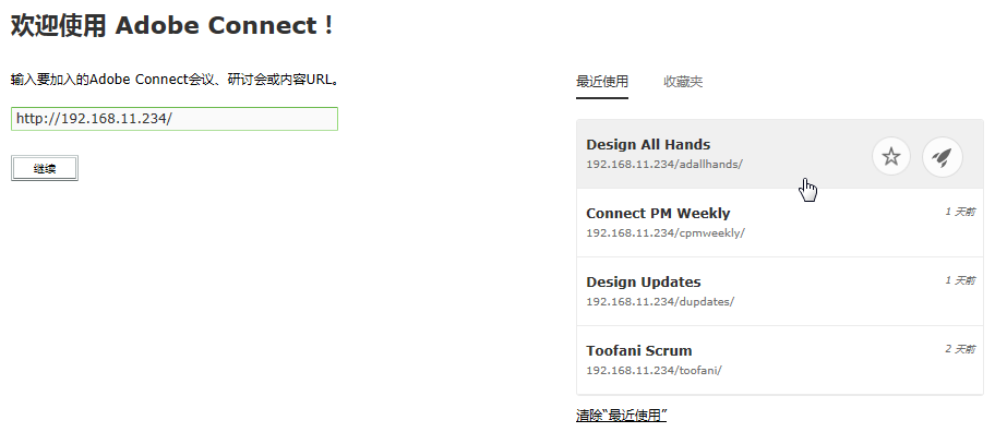 现已将通过“经典视图”访问 Adobe Connect 会议室这一选项从所有会议室启动工作流程中删除。 Adobe Connect 12.0 版本的发布后,用户将无法通过“经典视图”加入 Adobe Connect 会议室。